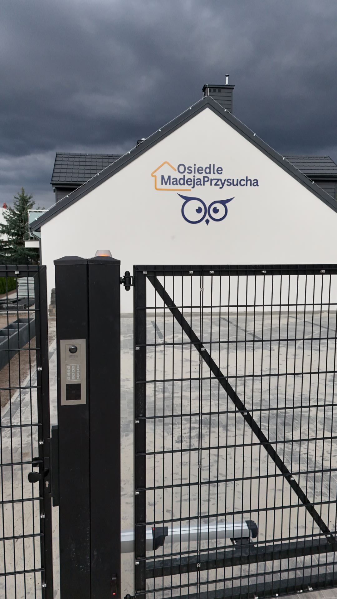 Brama wjazdowa na Osiedlu Madeja została wyposażona w nowoczesny system otwierania, który zapewnia wygodę i bezpieczeństwo. Brama może być otwierana za pomocą pilota lub zdalnie, bezpośrednio z każdego domu przez domofon. Dzięki temu mieszkańcy mogą łatwo kontrolować dostęp do osiedla, ciesząc się pełną swobodą i spokojem.