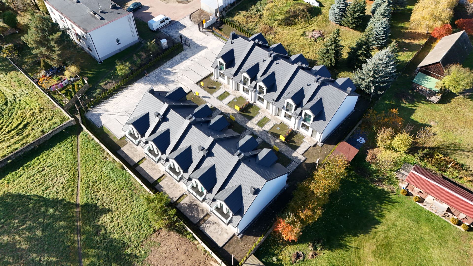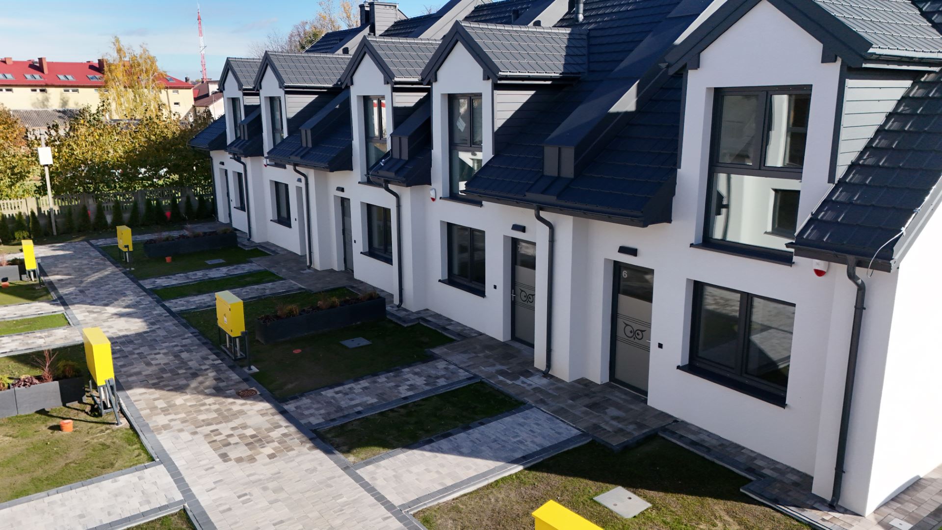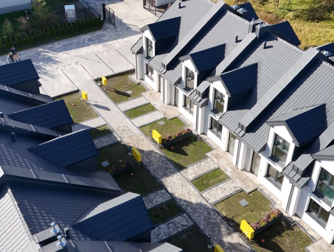 - Wszystkie domy wyposażone w światłowody i łącze RTV