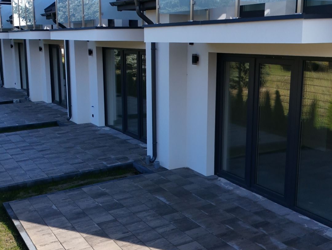 Wokół domów oraz na posesjach postawiliśmy na jeden z najchętniej wybieranych materiałów do utwardzania podłoża – kostkę brukową. Dzięki jej trwałości i estetyce nasze otoczenie zyska spójny i nowoczesny charakter. Do realizacji projektu wybraliśmy produkty renomowanej marki Jadar, która jest ceniona za wysoką jakość swoich wyrobów.